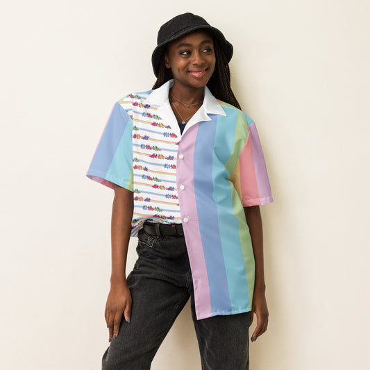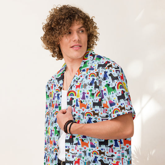 Pride Dog Cartoons | Unisex button shirt | *Inclusive, Pansexual, Bisexual, Gay, Lesbian, Asexual, Trans Flags dogs